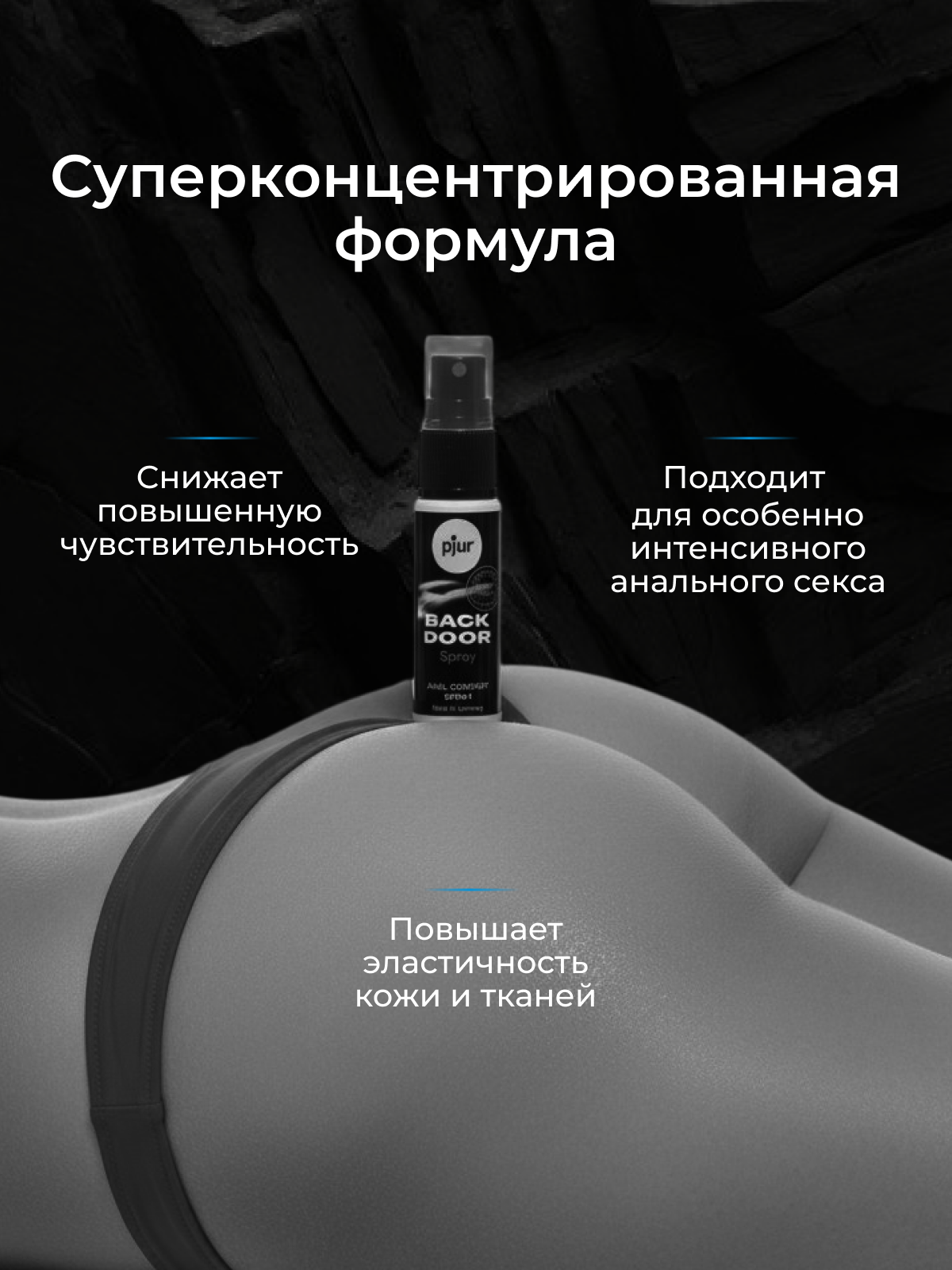 Содержащиеся в нём анестетики (не лидокаин и бензокаин) – заметно снижают чувствительность, а значит, помогают расслабиться и ослабляют возможные болевые ощущения. Способ применения: 1-2 нажатиями распылить спрей на анальное отверстие за пару минут до контакта.