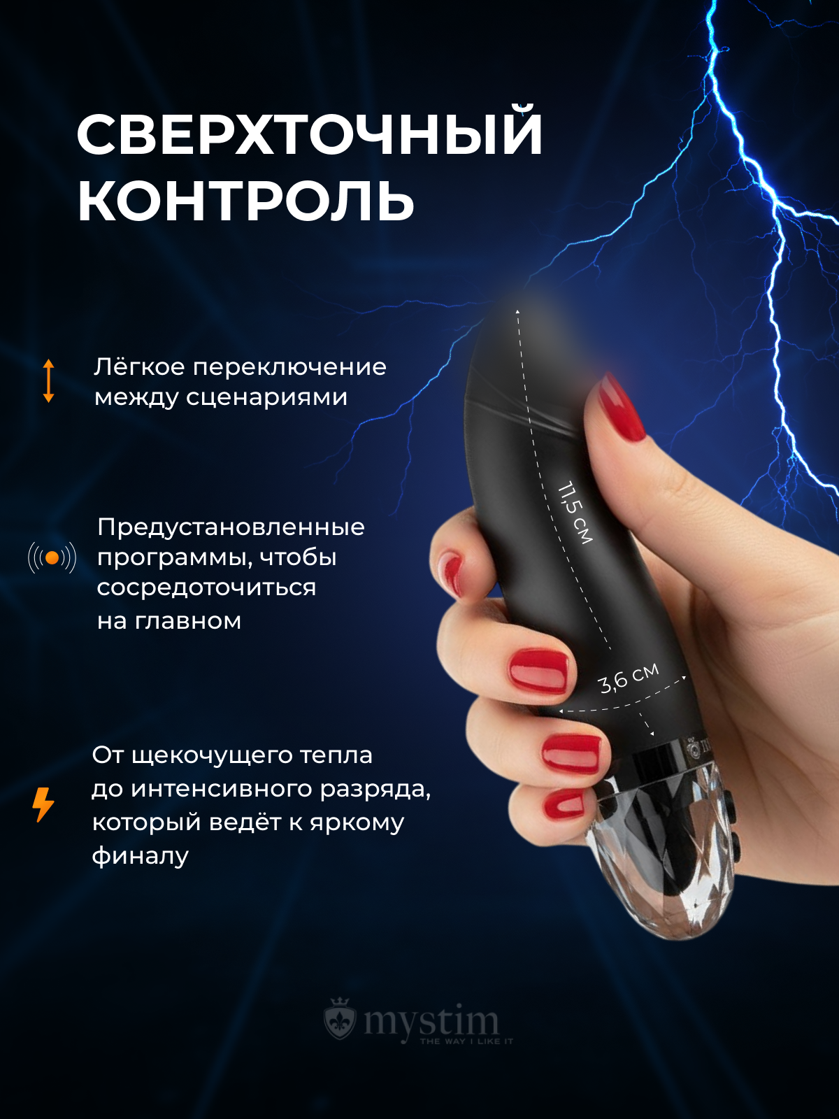 Ron создан, чтобы покорить вас: мощный и очень тихий мотор, 8 программ вибрации и 5 программ электро-стимуляции, а также программу тренировки тазового дна.