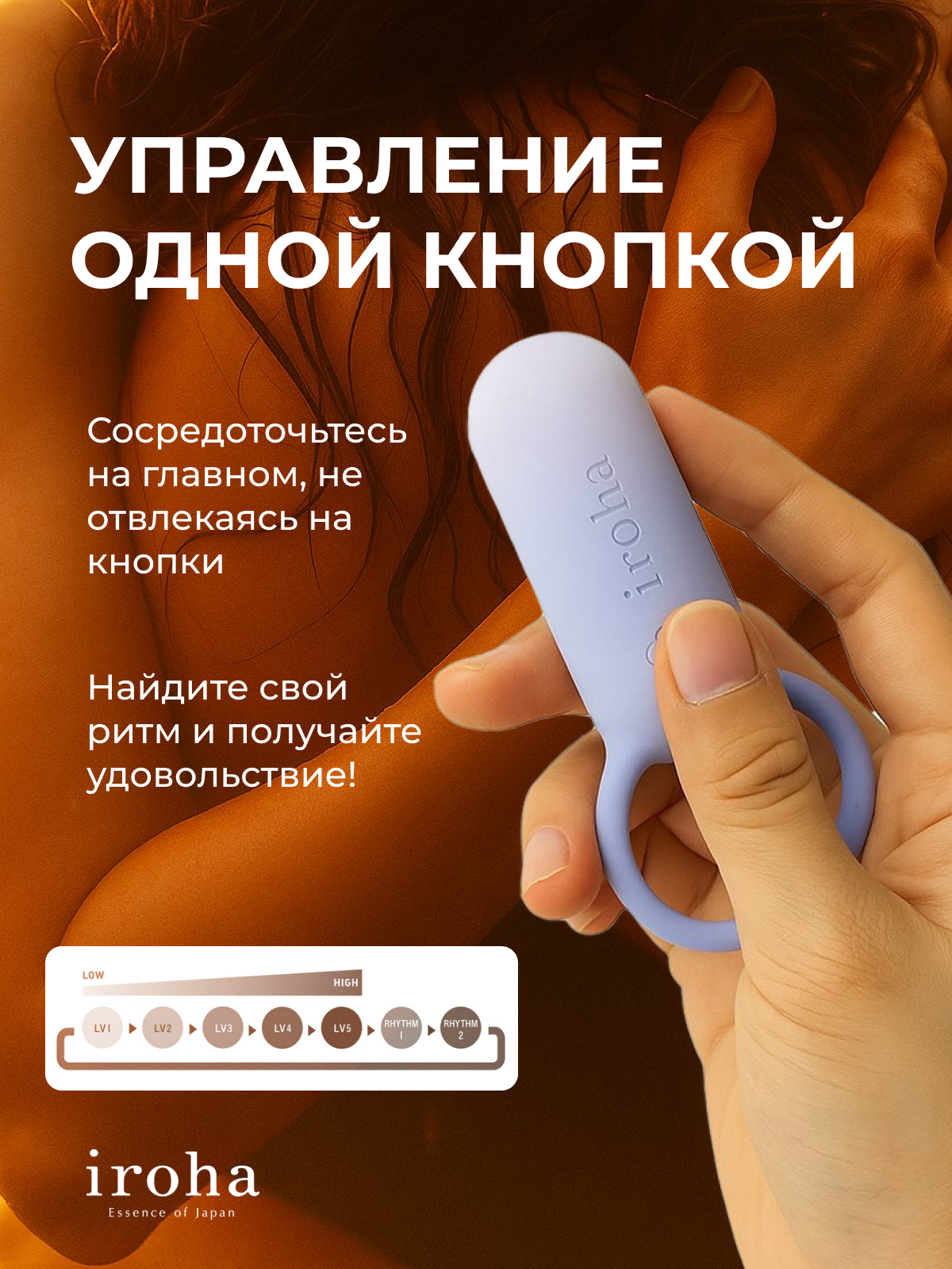 Простое управление одной кнопкой переключает 5 уровней вибрации и 2 ритмичных режима. 1 часа заряда аккумулятора обеспечивает приблизительно 60 минут беспрерывной работы.