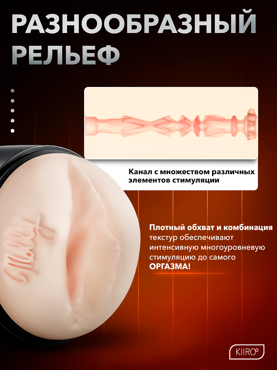 Разнообразный внутренний рельеф с плотным обхватом обеспечивает интенсивную стимуляцию до самого оргазма во время мастурбации.